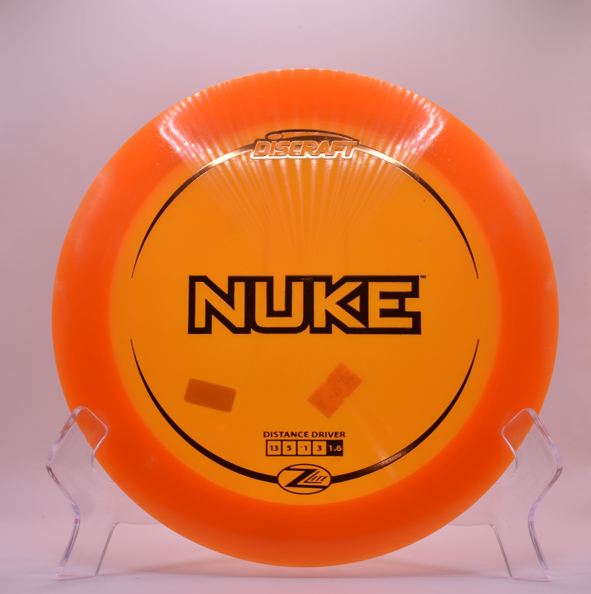 The Nuke is a fast and overstable distance driver made by Discraft. Bigger arms will be able to get some good turn out of it before it has a forward-pushing finish way down the fairway.
