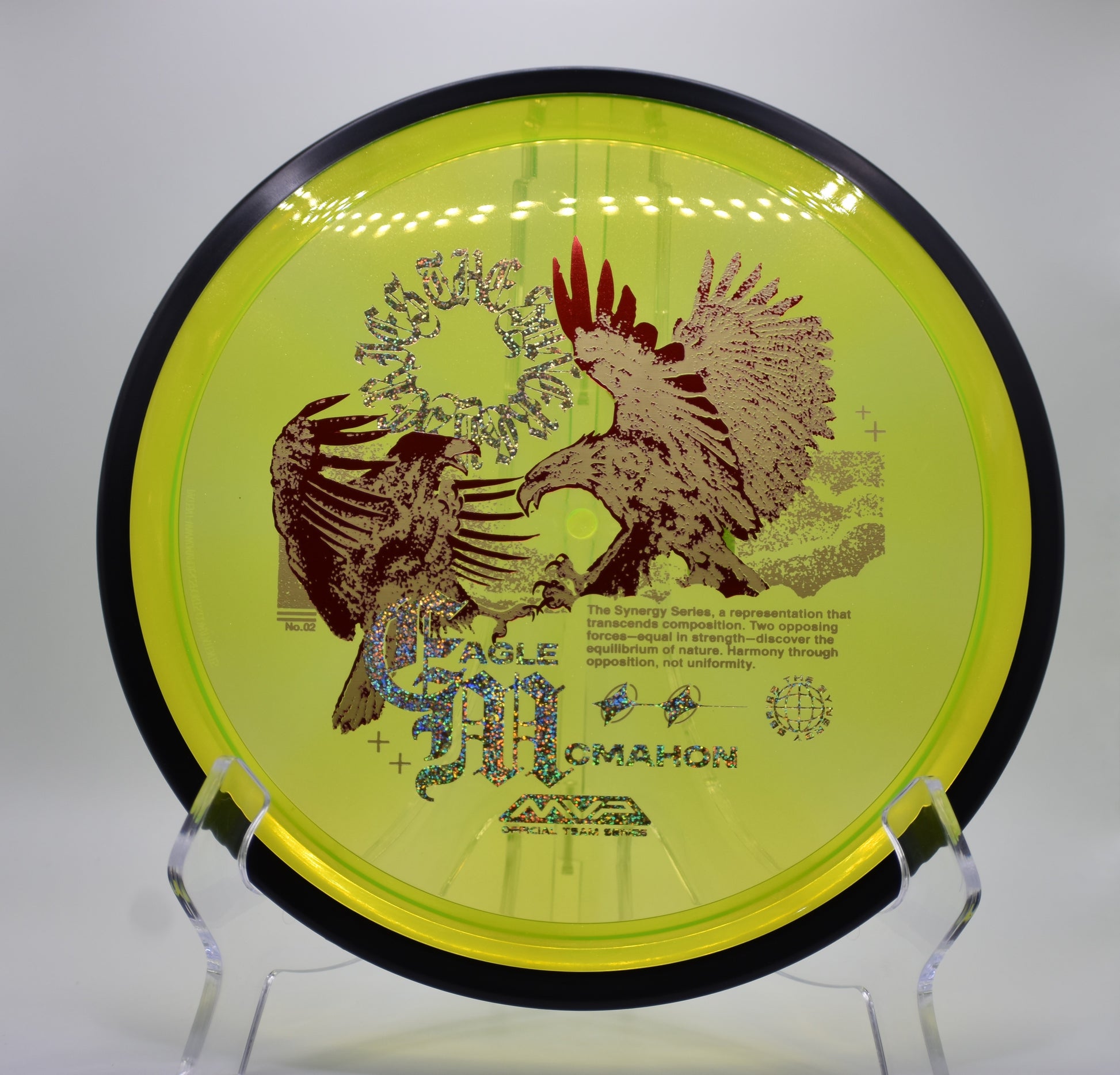 The second disc in Eagle McMahon’s Synergy Series has arrived! Choosing the Proton Resistor for his next entry - complete with another beautiful design from Green C Studio - this disc introduces the concept of equilibrium through two opposing forces equal in strength. Out on the course, not every round goes the way you hoped it would, and it becomes easy to let the negative feelings take over. This is something even professionals like Eagle McMahon have struggled with. However, through reflection and resistance he has learned that there is always good with the bad. The trick is finding equilibrium through that opposition, not uniformity - an acceptance of the natural order. Know that birdies will come with the bogies, and let the Proton Resistor be a constant and dependable reminder that you can trust the process.