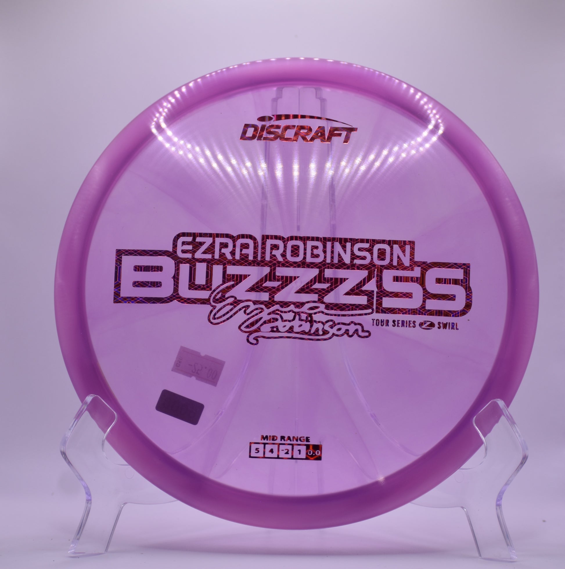Ezra Robinson brings finesse and control to the 2025 Tour Series lineup with the Buzzz SS. Featuring our fan favorite Z Swirl plastic, this blend enhances your grip while adding aesthetic flair. The slightly understable flight makes this an ideal disc for turnover shots, touch forehands, and shaping lines across the course.